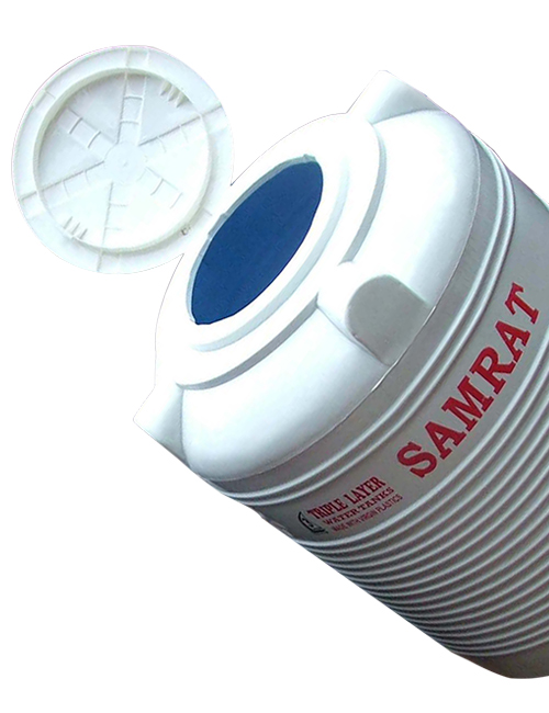 SAMRAT with its revolutionary black overhead water tank changed the way India stored water. Now with equal panache, it is once again going to change the face of Indian houses with its brilliant new product: SAMRAT Triple Layer White Tank. Its bright white color adds aesthetical value to your building. The three layer wall not only controls the inside temperature, it actually makes the water storage more hygienic. Moreover, tank gets extra strength hence longer life.